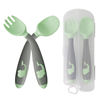 Love! Love! Love these! They bend left or right and are perfect for baby to use until they develop the dexterity to turn the utensils to get food in mouth. The only thing I might change is the fork thickness as it makes it hard to stab food into the tines but that is minor. Get several sets! They even come in durable plastic case!