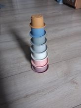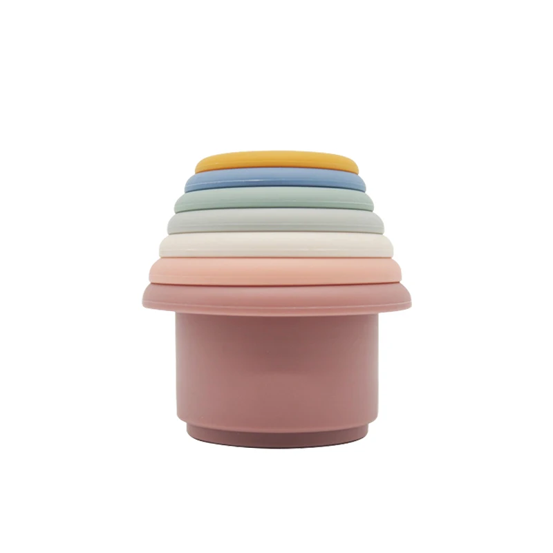 The stack of cups is a simple toy that can coax your baby to take a bath