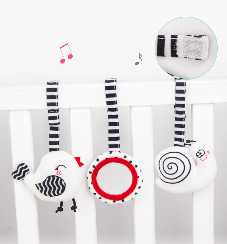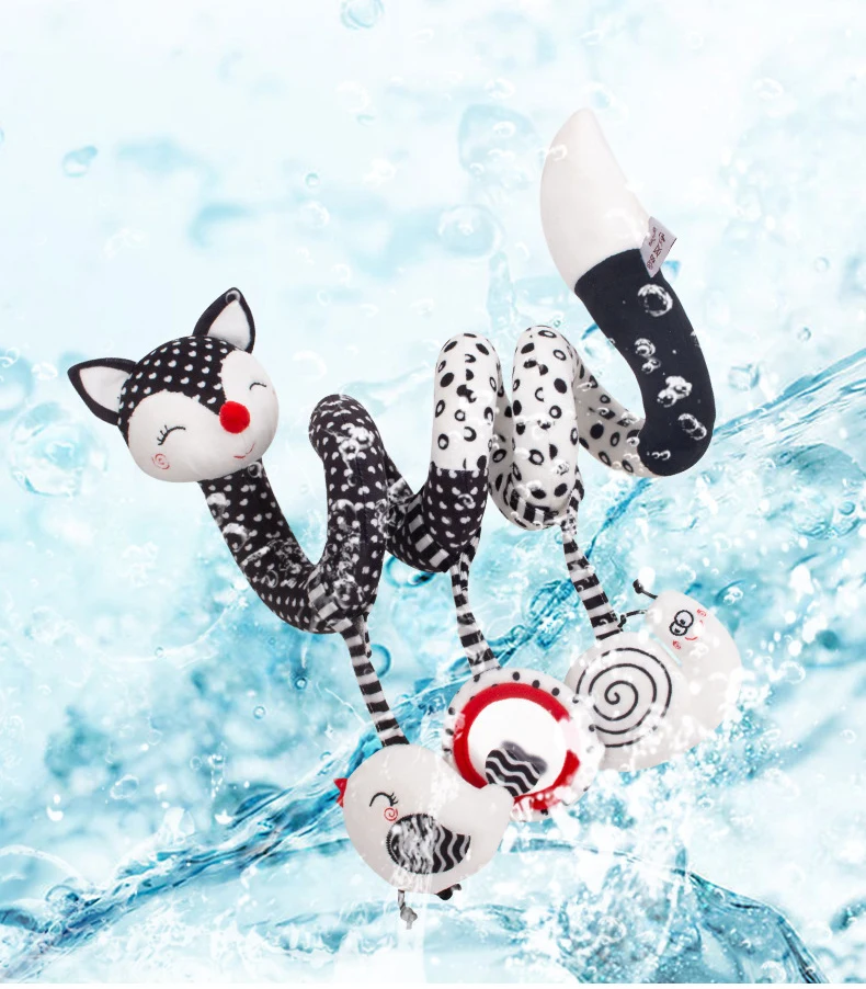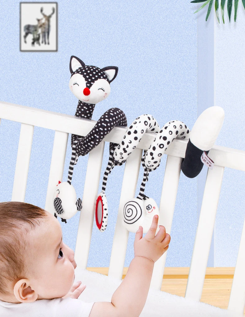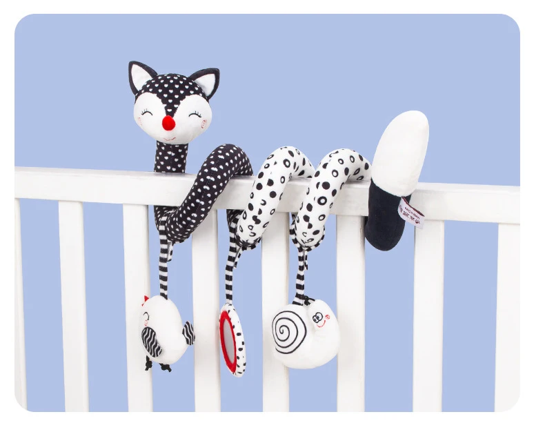 Develop Baby Visual Ability】The visual development of a newborn baby needs a certain period of time. When the baby is 0-12 months old, the black and white series of spiral activity baby toys is the best choice for the baby’s vision development. Adorable newborn hanging rattle toys with animal design can inspire baby’s visual development and cultivating baby’s color perception, encourage baby to touch and explore