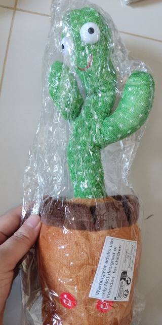 It's cute, I like it. Works with 3 AA batteries, not included.