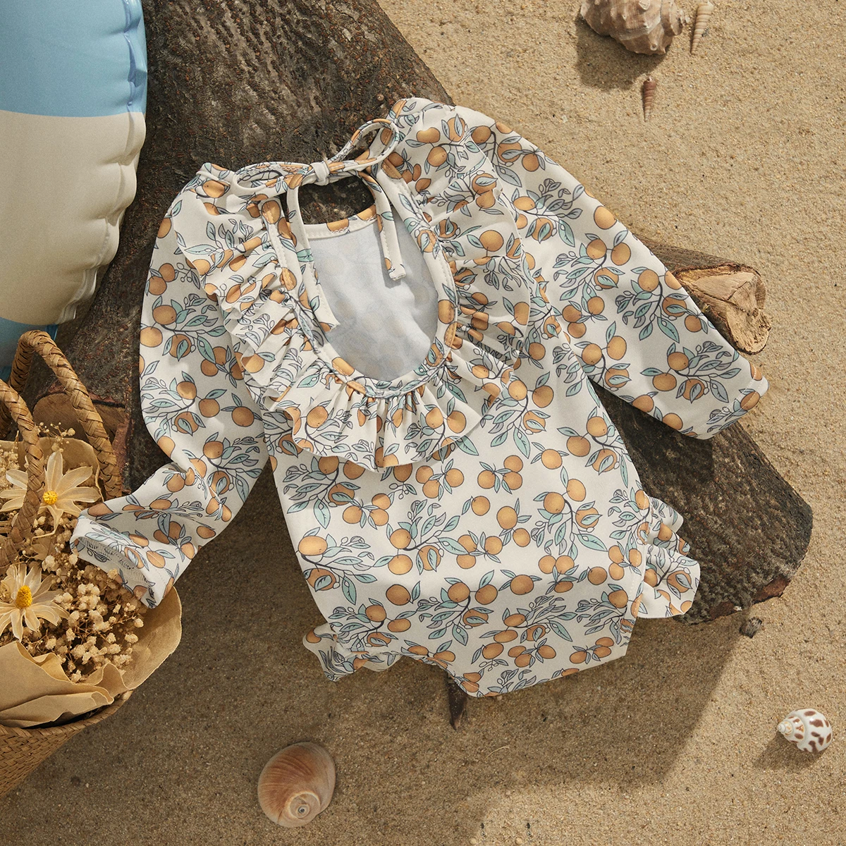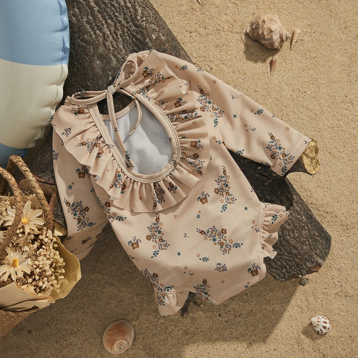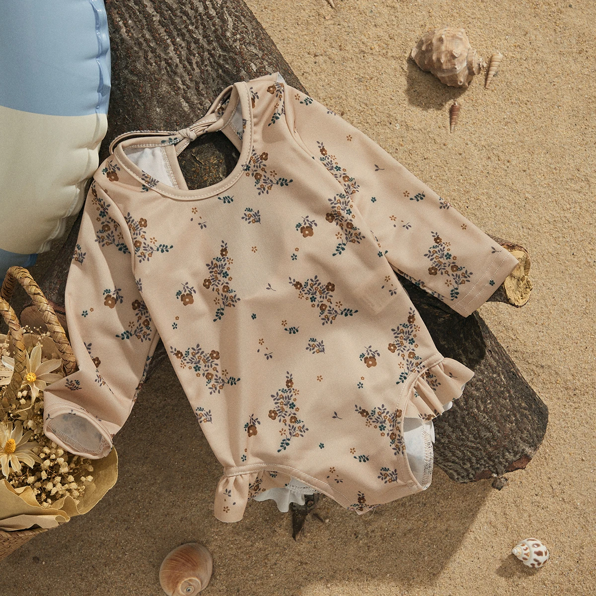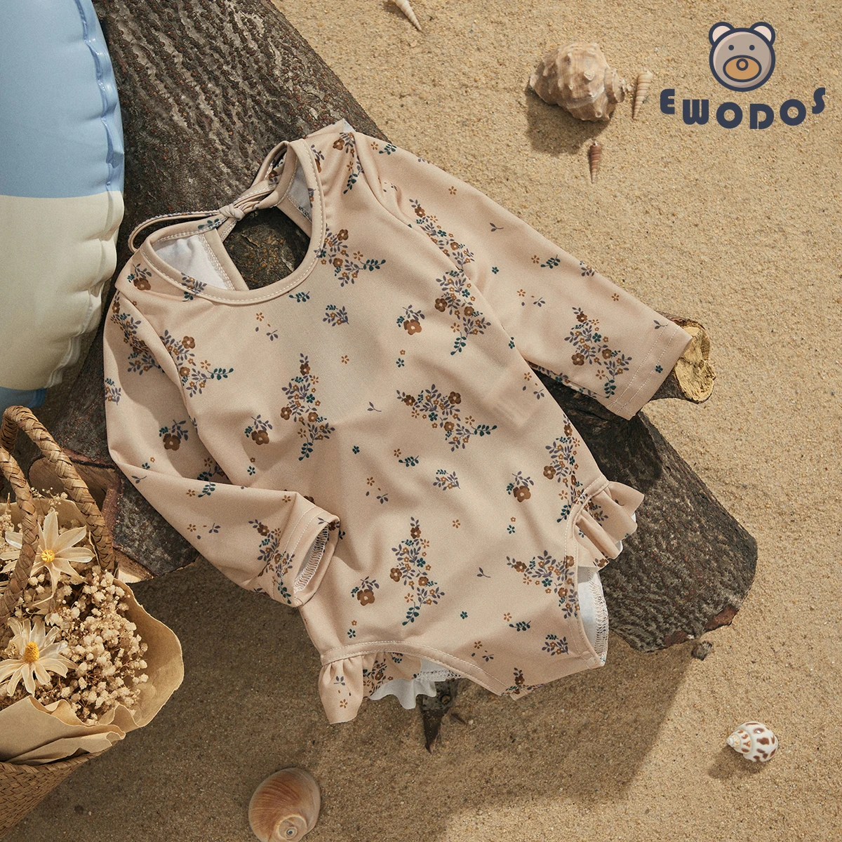 EWODOS 1-4 Years Toddler Baby Kids Girls Summer Sweet Swimsuits Floral Print Long Sleeve Ruffles Swimwear Beachwear Bathing Suit