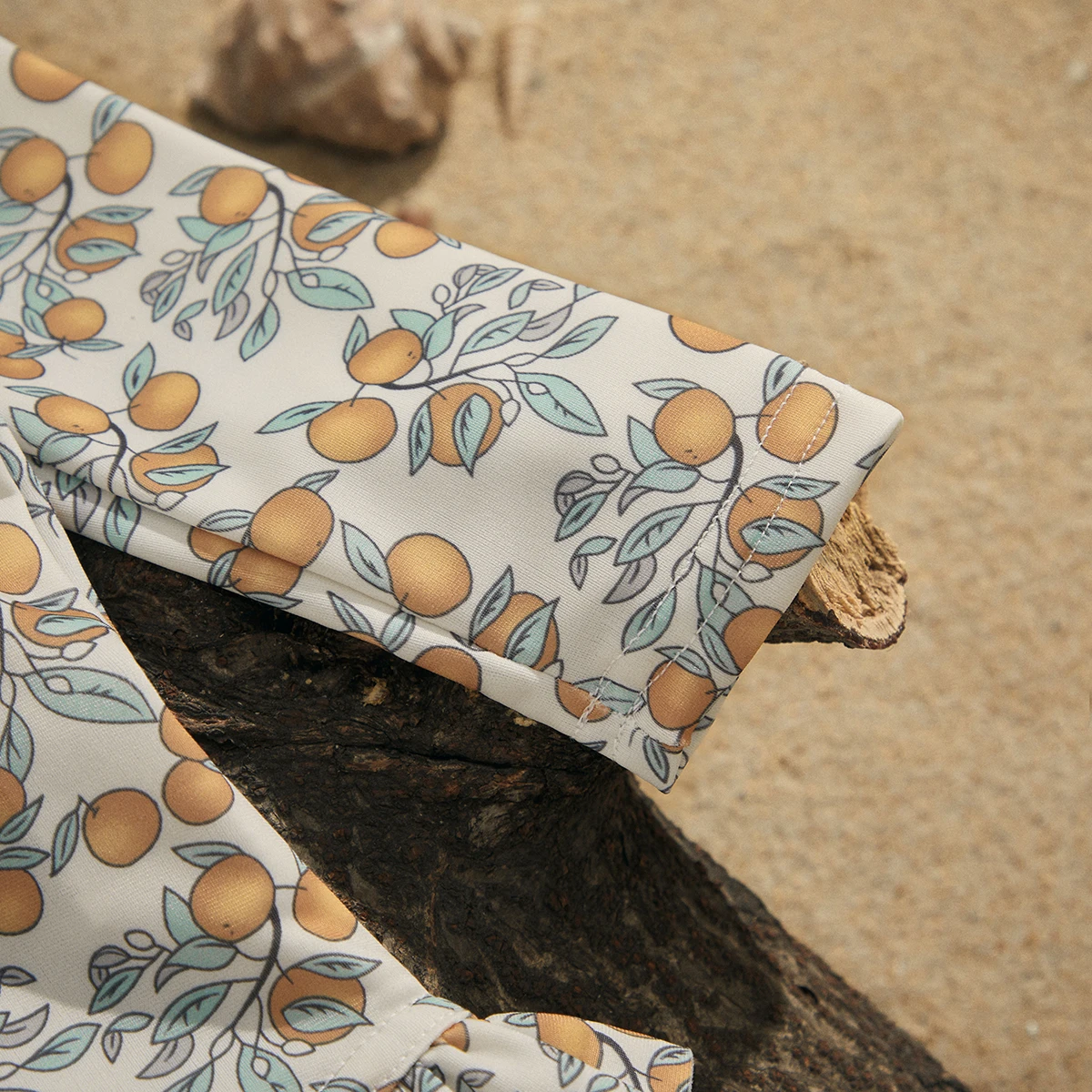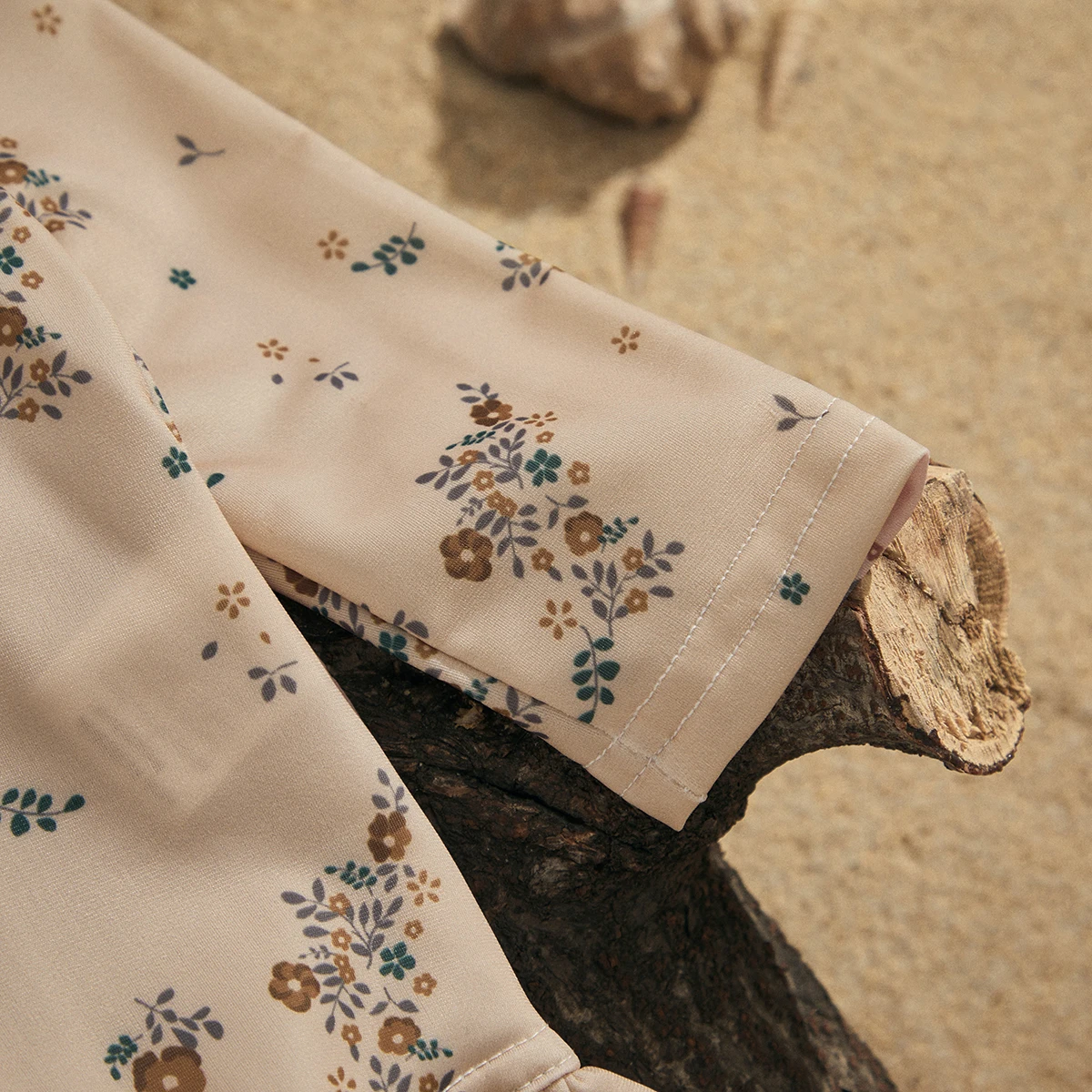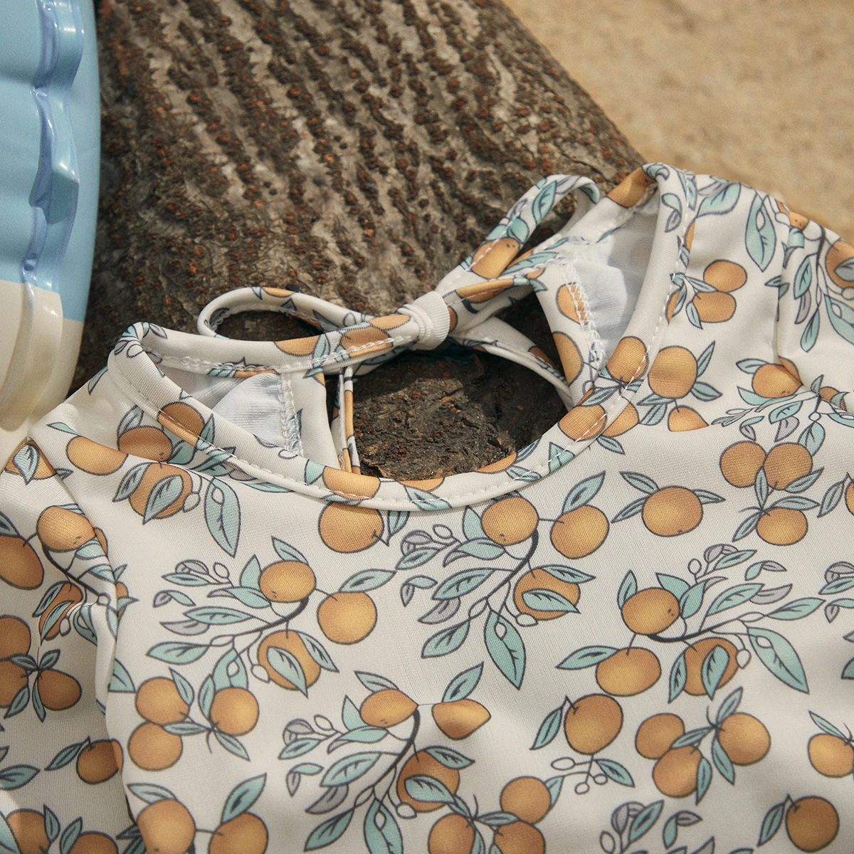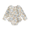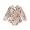 Floral print, round neck, ruffle hem, long sleeve jumpsuit swimsuit, sweet and cute summer bikini beachwear for baby girls.