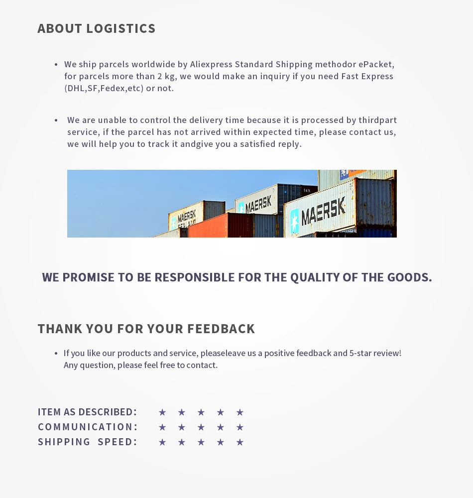 • If you did not receive the product within the guaranteed time( 45 days not including 2-5 day processing) you can request a refund or a reshipment.